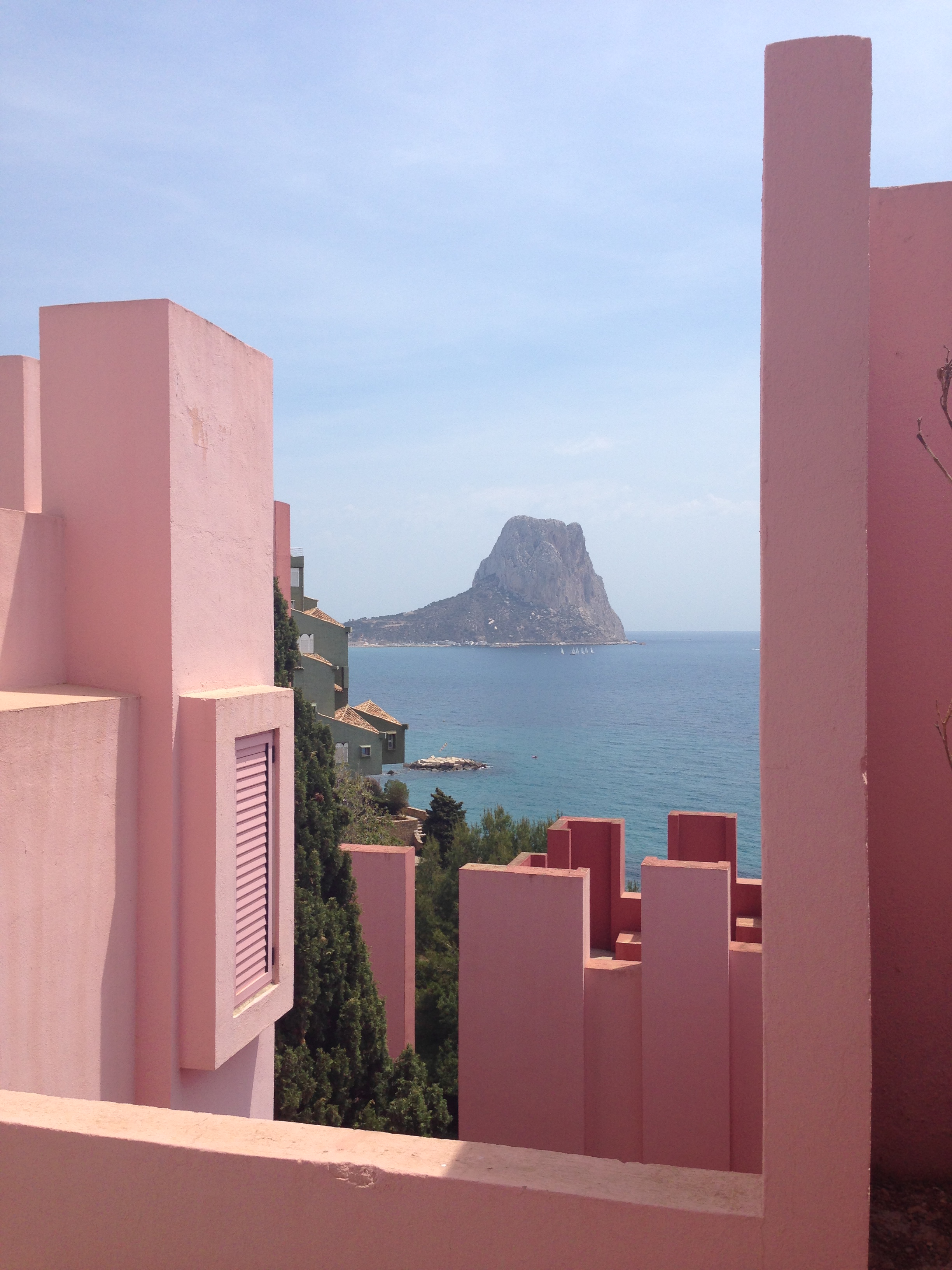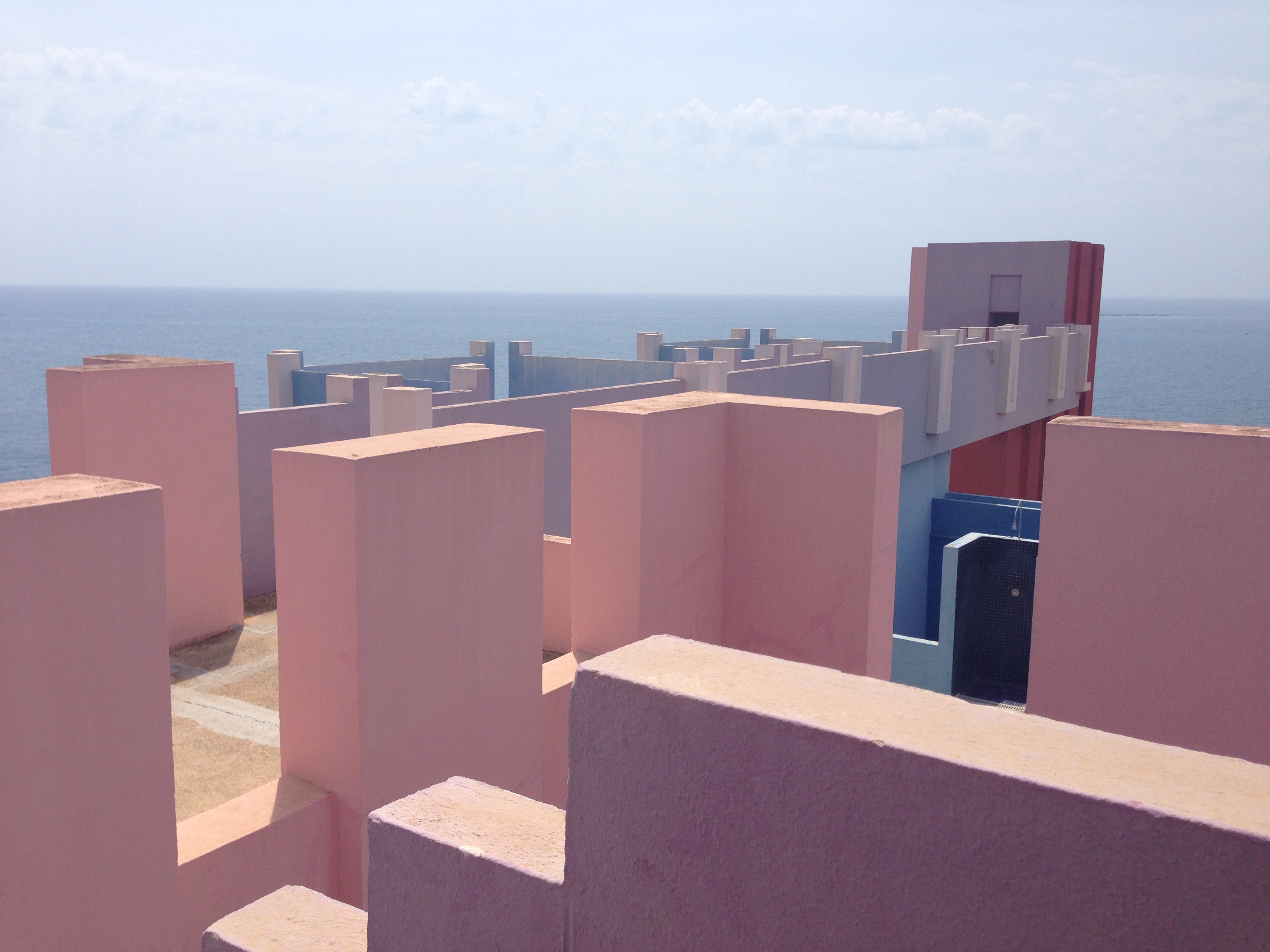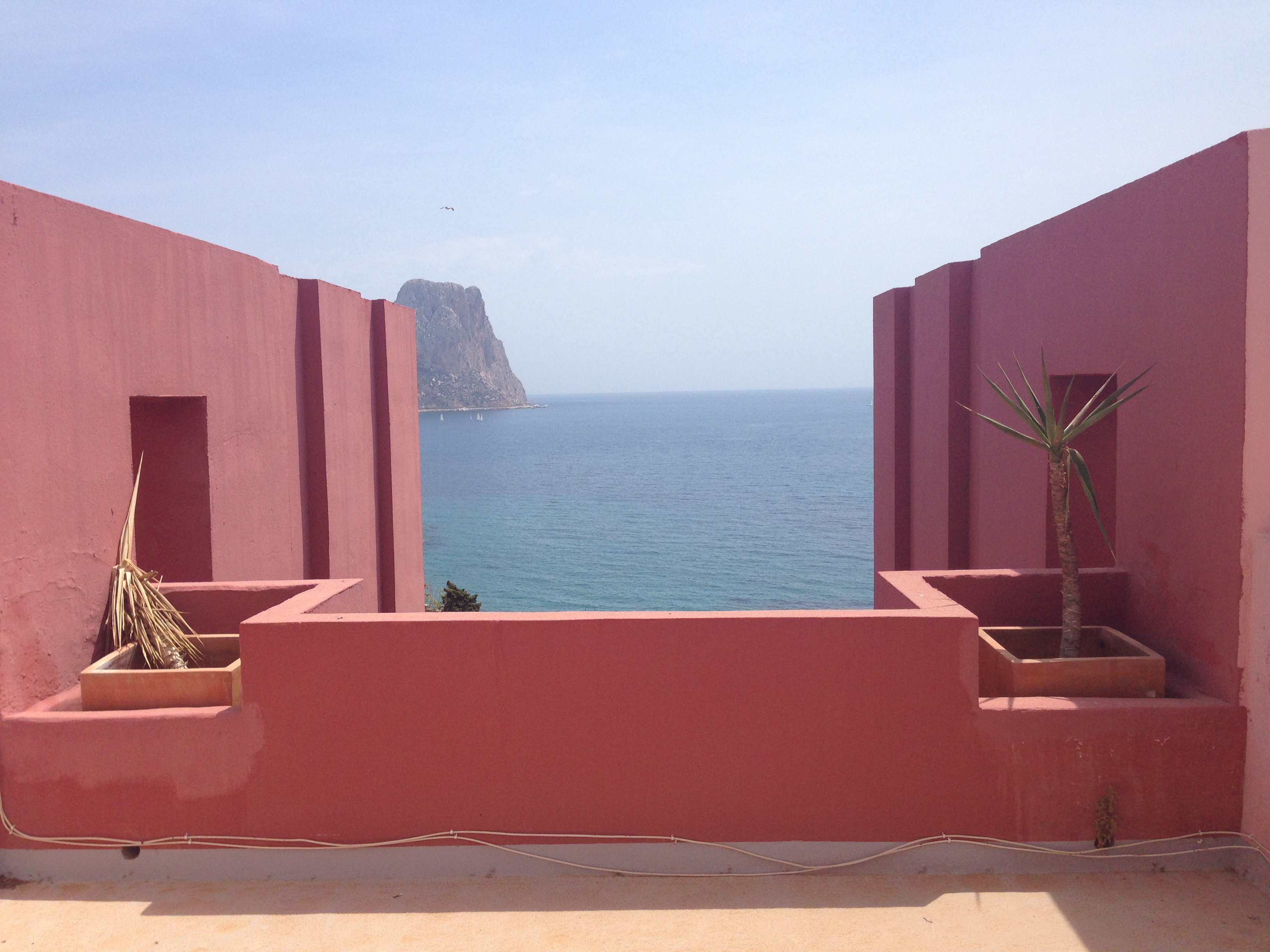 La Muralla Roja es el edificio más representativo del conjunto de la cala de La Manzanera. La directa traducción al entorno calpino de un poblado árabe encastrandolo en una retícula a base de cruces no resta ni un ápice a la sensación de perdición dentro del edificio propia del referente directo. Las múltiples comunicaciones verticales a modo de escaleras que atraviesan todo el conjunto para llegar a la terraza comunitaria que alberga la piscina privada es una sucesión de marcos donde el paisaje del mar, el peñón o las montañas ganan aún más belleza y protagonismo.