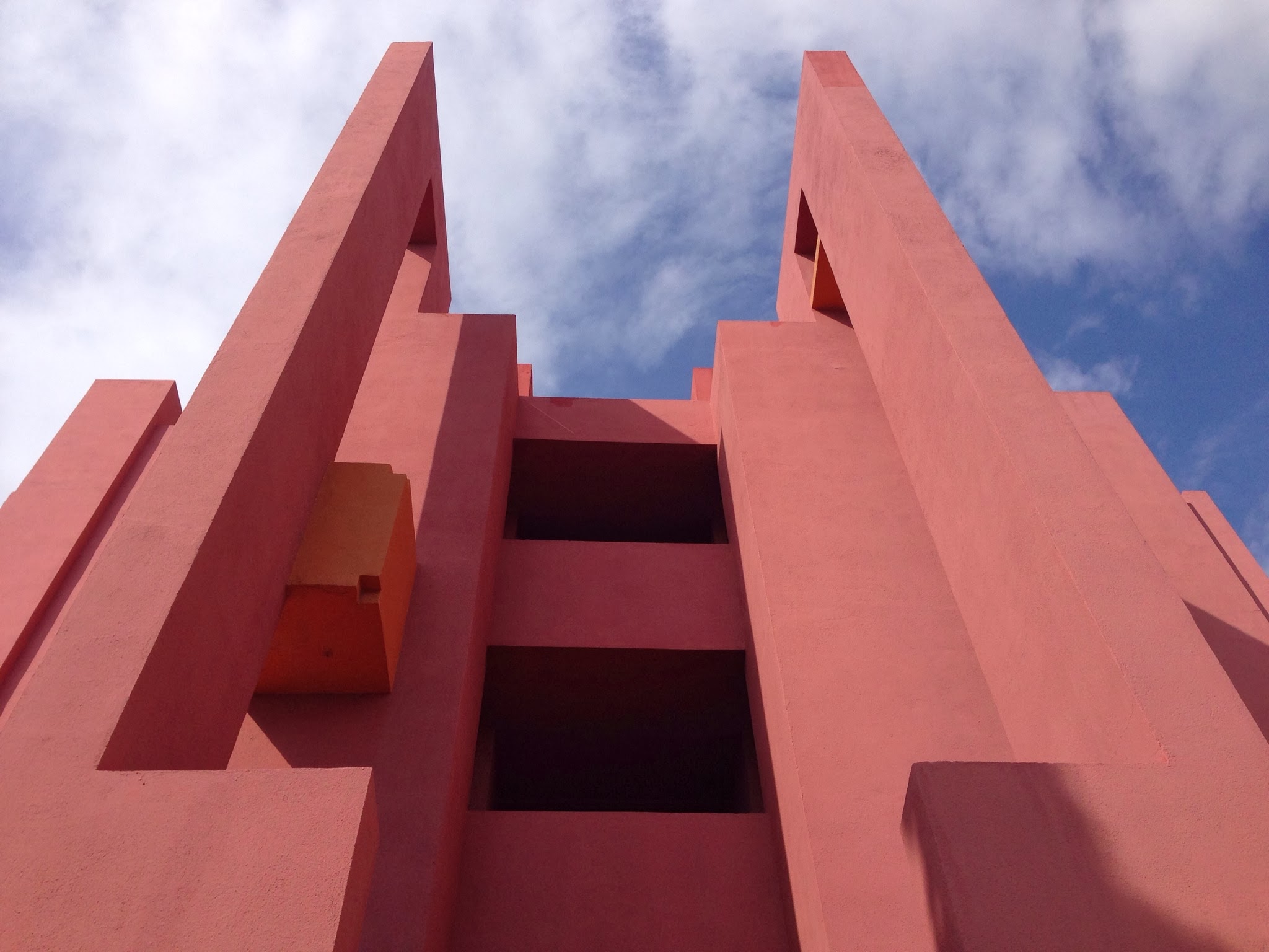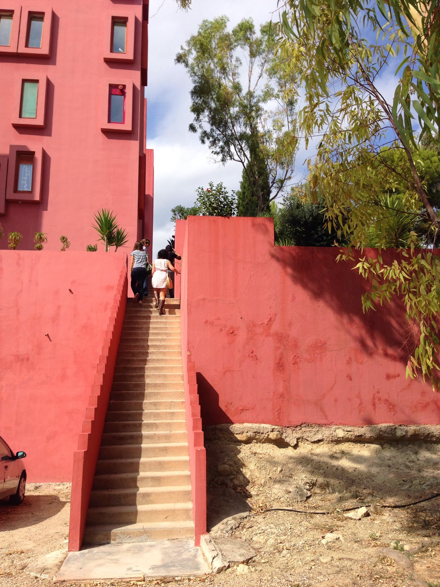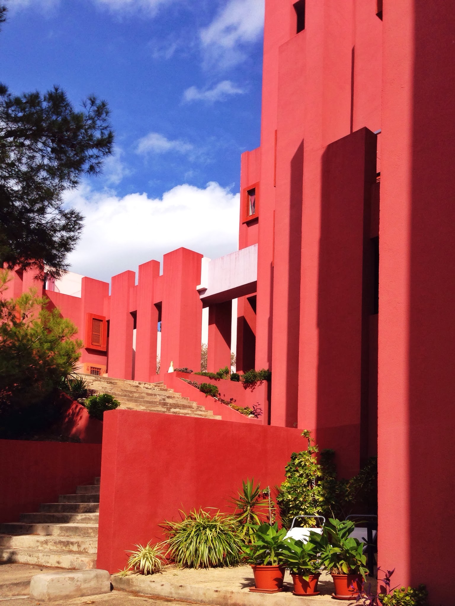 La Muralla Roja es el edificio más representativo del conjunto de la cala de La Manzanera. La directa traducción al entorno calpino de un poblado árabe encastrandolo en una retícula a base de cruces no resta ni un ápice a la sensación de perdición dentro del edificio propia del referente directo. Las múltiples comunicaciones verticales a modo de escaleras que atraviesan todo el conjunto para llegar a la terraza comunitaria que alberga la piscina privada es una sucesión de marcos donde el paisaje del mar, el peñón o las montañas ganan aún más belleza y protagonismo.