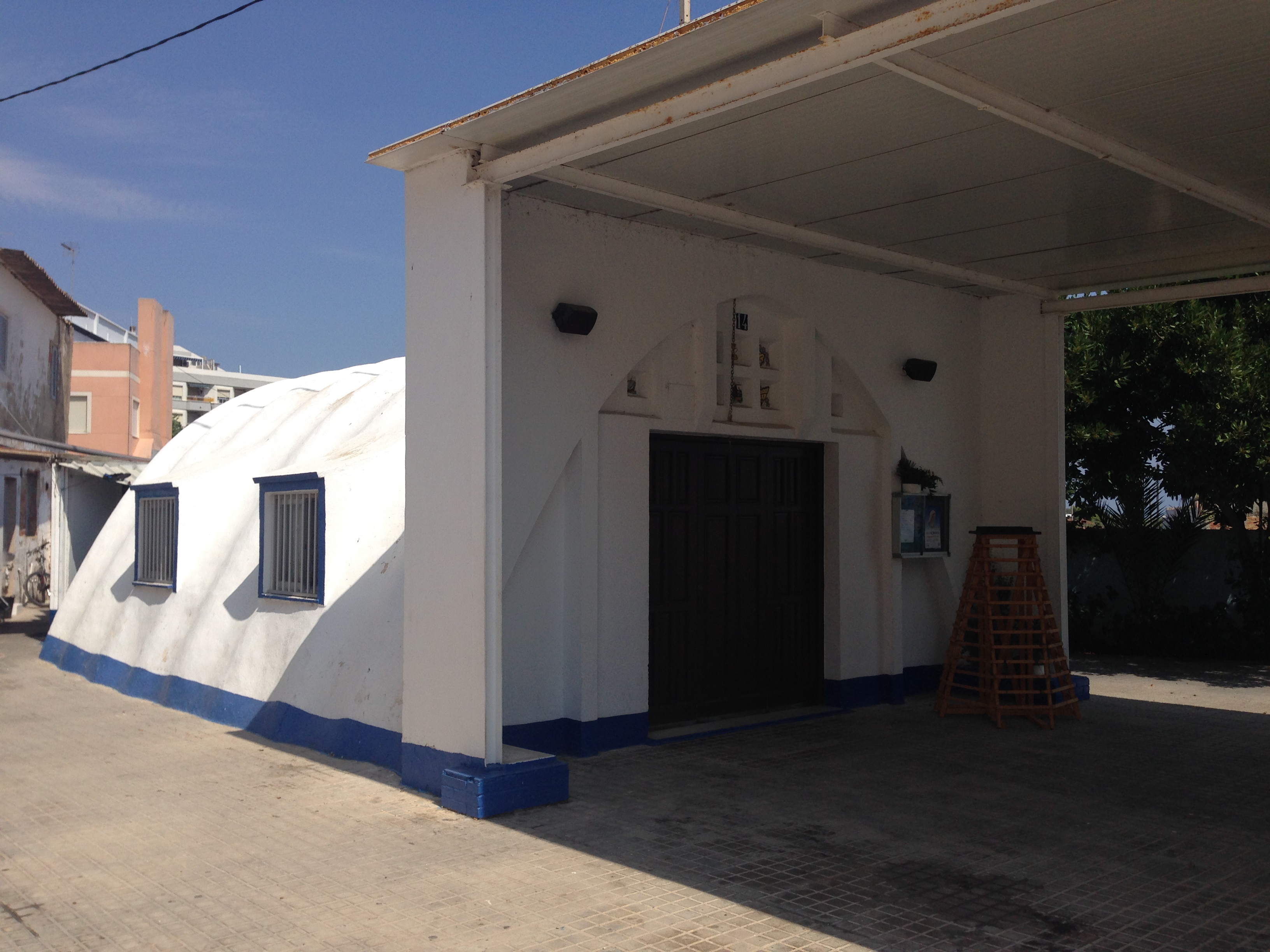 Uso original, conjunto de viviendas ultrabaratas para pescadores e iglesia promovidas por el ministerio de vivienda en los terrenos cedidos por el Marqués de Vallterra en El Perellonet.