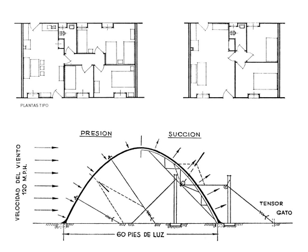 Moreno Barberá también apoyará este tipo de construcciones en la que un material caro se usa con inteligencia y economía de medios, cualidades de confort y facilidad de construcción.