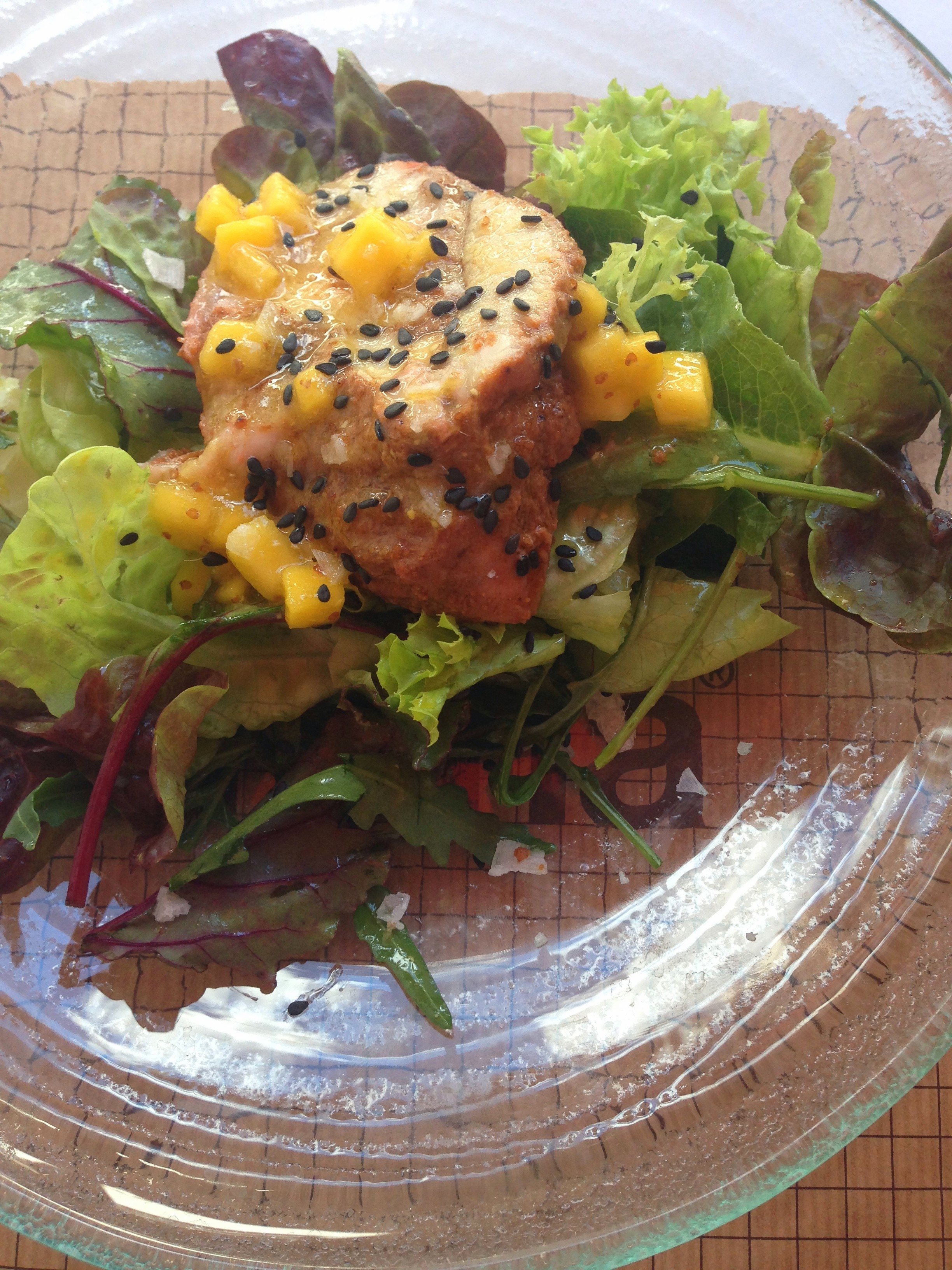 El menú del Bar Tonyina de mediodía es fijo y consta de ensalada, 2 platos y postre con un precio de 11€. Café y bebida a parte. Como resultado tienes una comida muy variada en sus texturas y sabores y con el que quedé más que satisfecha. Sólo hay que ver las fotos de la comida para dar una idea de la presentaciones de los platos. La composición de colores, los volúmenes y la disposición de los alimentos en el plato junto con las diferentes vajillas utilizadas a lo largo de la comida hacía que, además de estimular gratamente el sentido del gusto, el tacto, la vista y el olfato quedaran más que satisfechos.