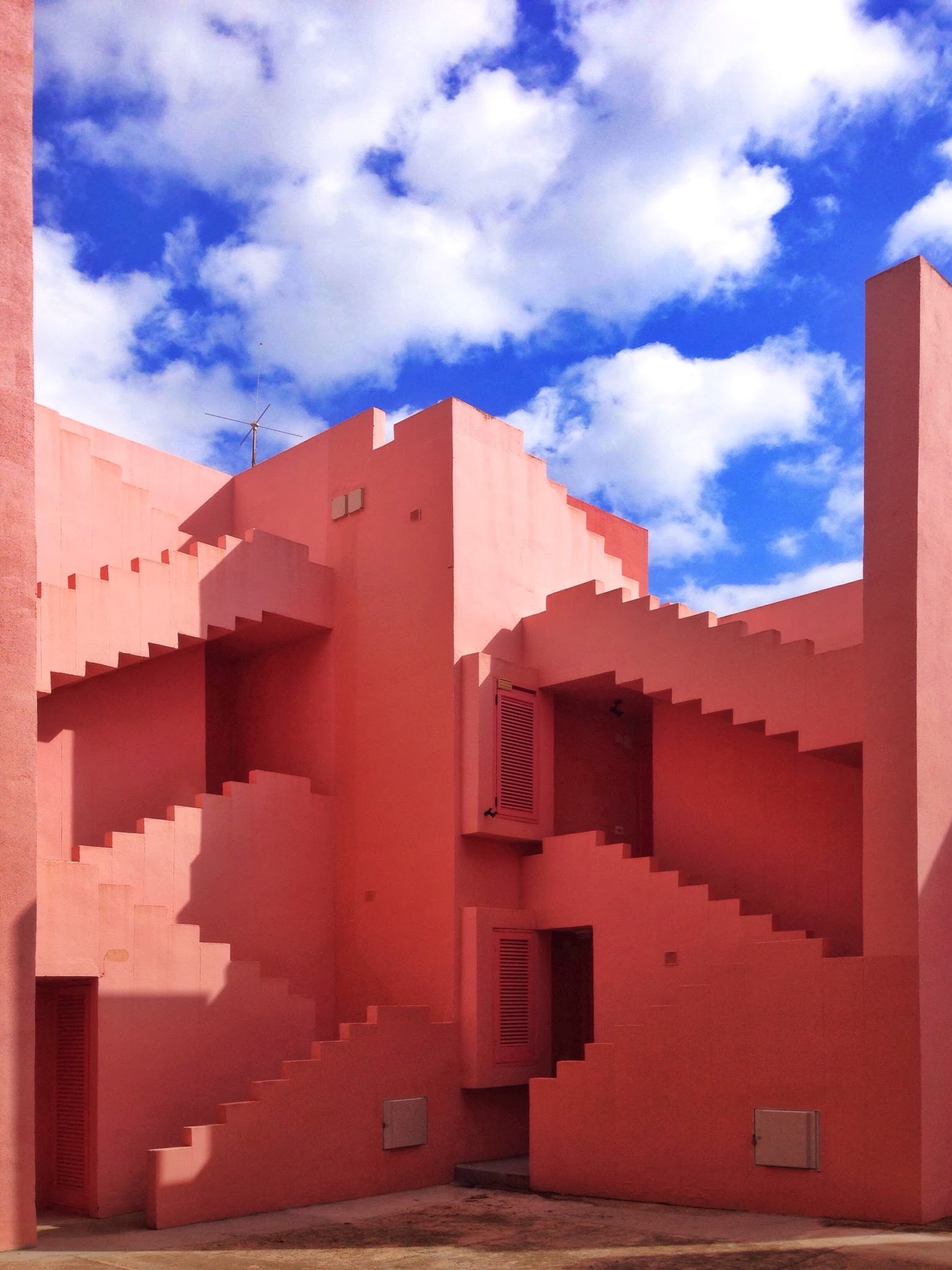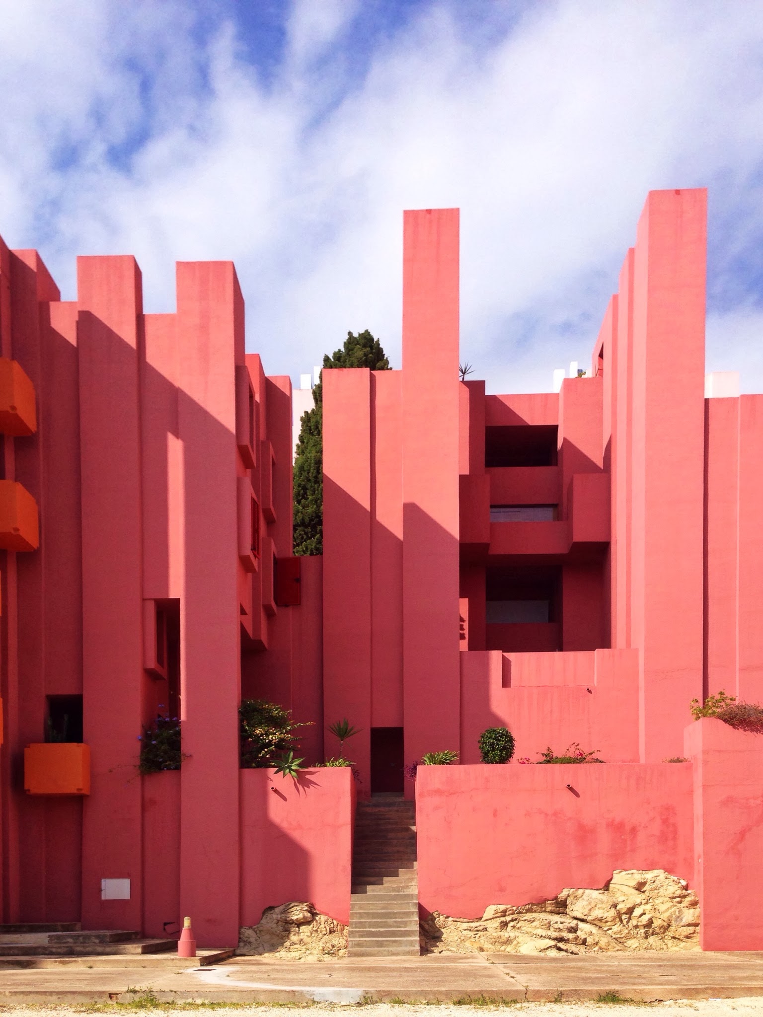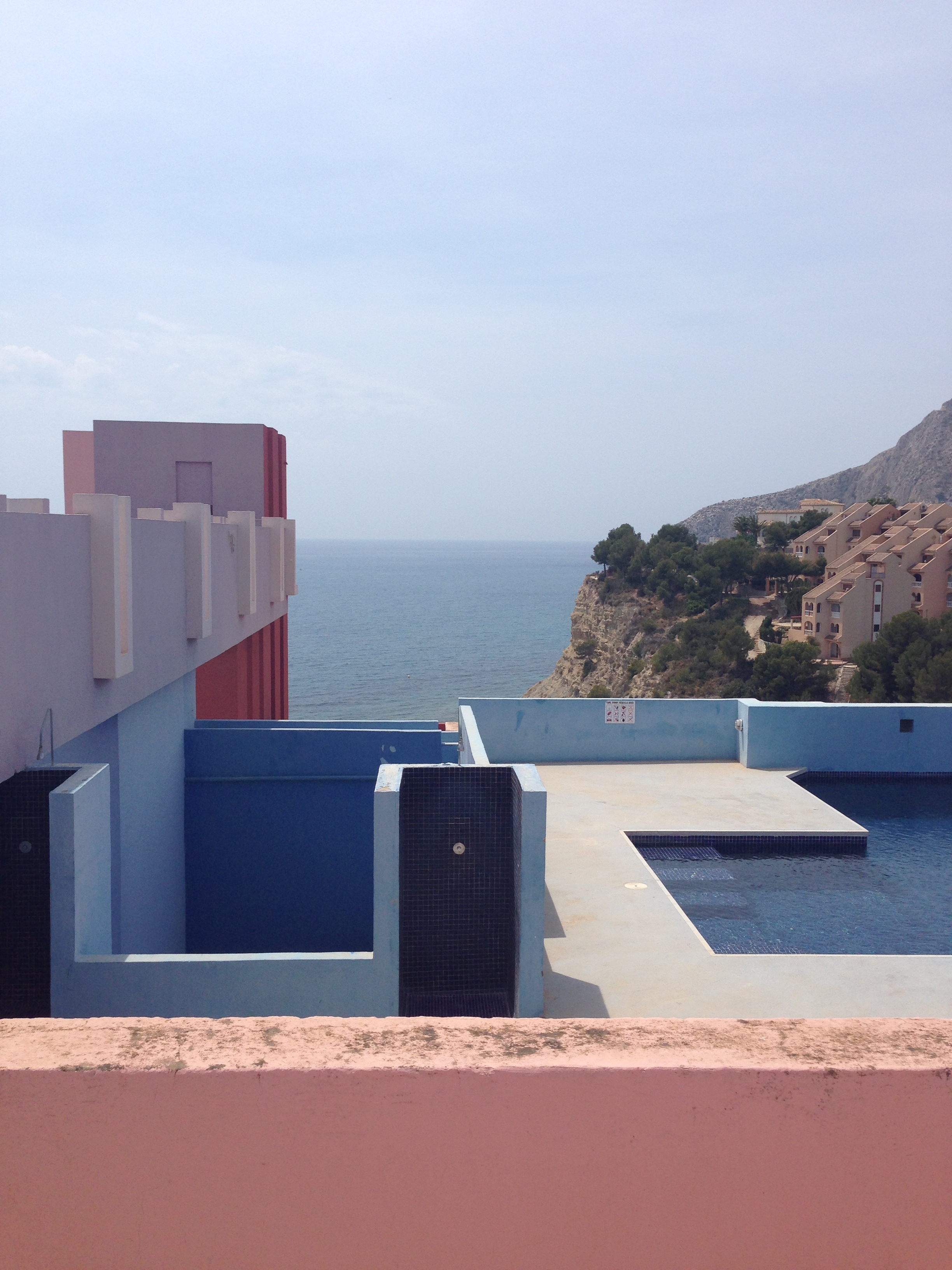 La Muralla Roja es el edificio más representativo del conjunto de la cala de La Manzanera. La directa traducción al entorno calpino de un poblado árabe encastrandolo en una retícula a base de cruces no resta ni un ápice a la sensación de perdición dentro del edificio propia del referente directo. Las múltiples comunicaciones verticales a modo de escaleras que atraviesan todo el conjunto para llegar a la terraza comunitaria que alberga la piscina privada es una sucesión de marcos donde el paisaje del mar, el peñón o las montañas ganan aún más belleza y protagonismo.